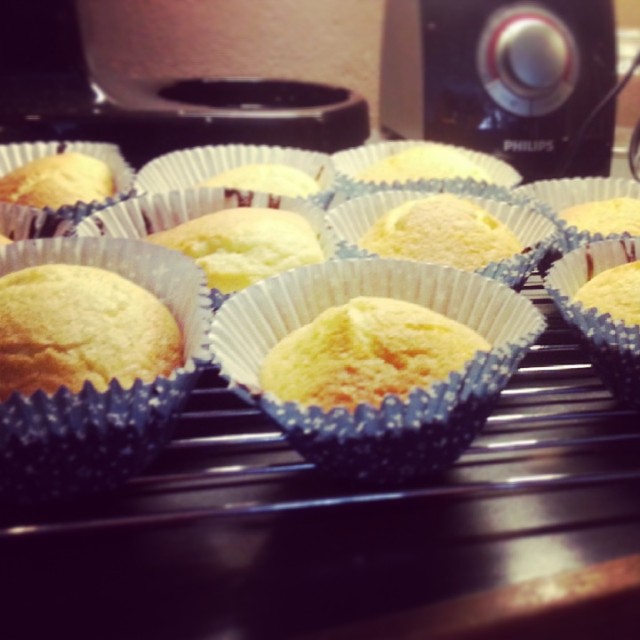 Stek cupcakene på 200 grader i 10-12 minutter. Avkjøl på rist.