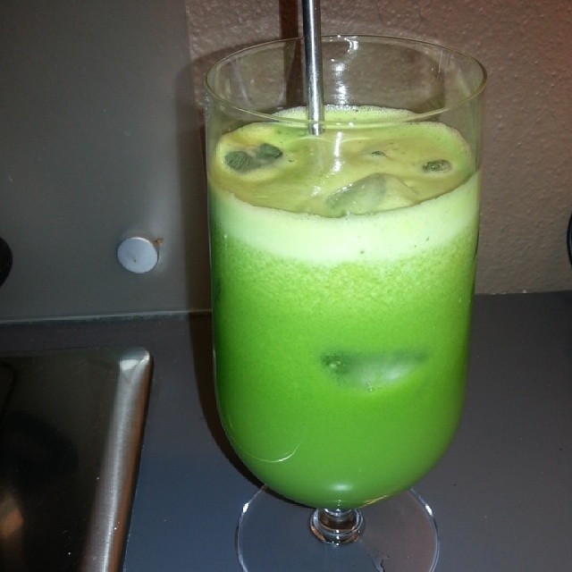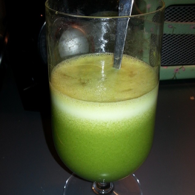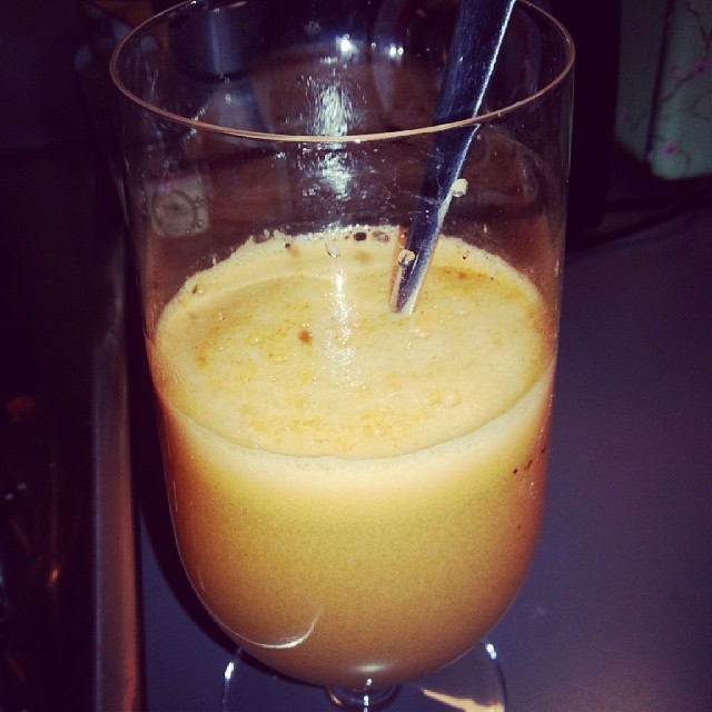 Lages i blender, husk å fjerne skallet på bananen, ble litt tjukk så kan ha i litt mer veske i form av mer juice/vann eller isbiter.