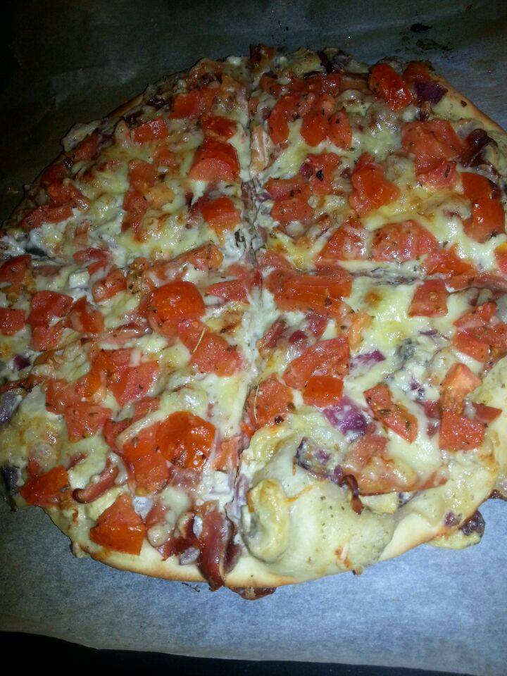 I dag lagde jeg Hvit Pizza til middag, ikke akkurat slankemat kanskje men det ble veldig godt.