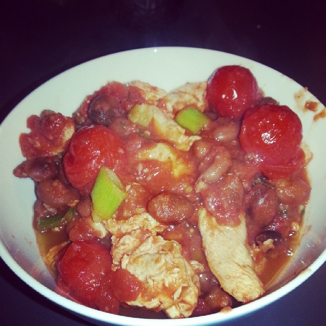 Skjær kyllingen og vårløken i passe biter, ha alt oppi stekepannen og la det koke til kyllingen er ferdig kokt. Lettvint, godt og magert:))
