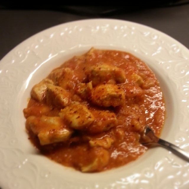 Jeg stekte kyllingen og hadde i resten av ingrediensene og lot det koke i 5 min.