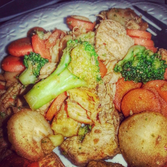 1 kyllingfilet, krydret med røkt paprikakrydder og chiliflak