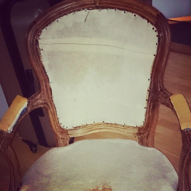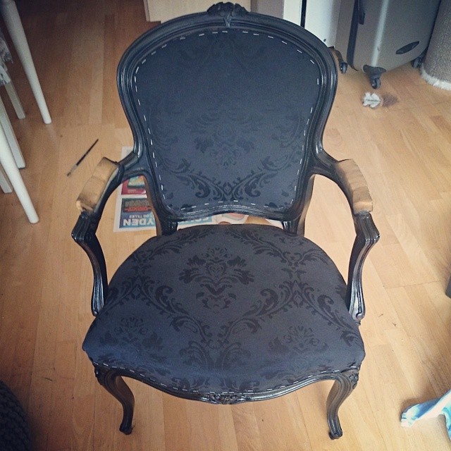 I går tok vi turen til Alnabru og Stoff & stil bla. Jeg har en gammel Rokokko stol som jeg kjøpte for noen år siden, har hatt lyst til å trekke den om lenge, men har ikke kommet så langt. Men nå er jeg og Grete i gang, spraymalte den i går og har satt på trekk på bak og strippet den for det gamle stoffet. Den blir dritlækker !!