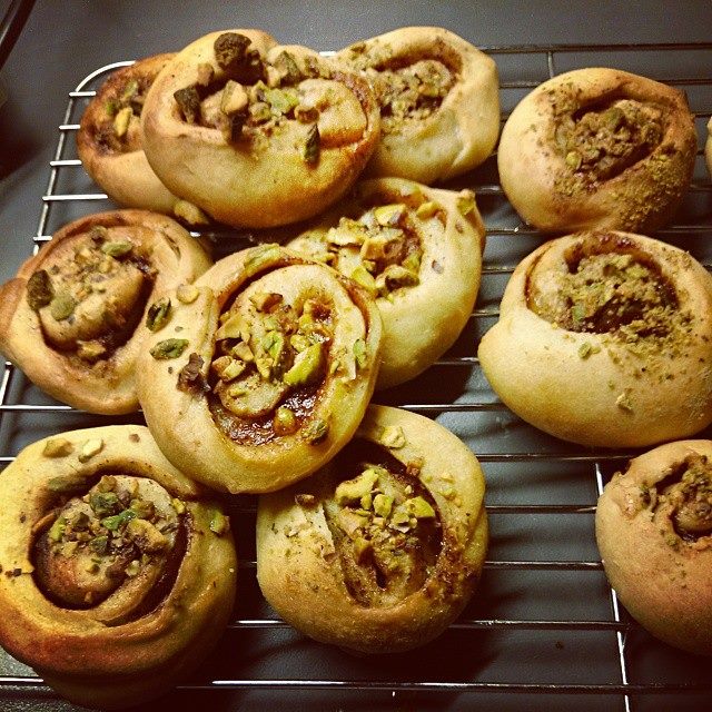 I går lagde jeg kanelsnurrer med hakkede pistasjenøtter, her finner dere grunnoppskriften på bollene -> http://www.detsoteliv.no/oppskrift/cinnamon-sugar-twists?fb_action_ids=10152634403061970&fb_action_types=og.likes&fb_source=feed_opengraph&action_object_map={%2210152634403061970%22%3A455761134551785}&action_type_map={%2210152634403061970%22%3A%22og.likes%22}&action_ref_map=[] Jeg rørte sammen smør, kanel og sukker istedet for å pensle og strø det på jeg synes det er mye bedre.