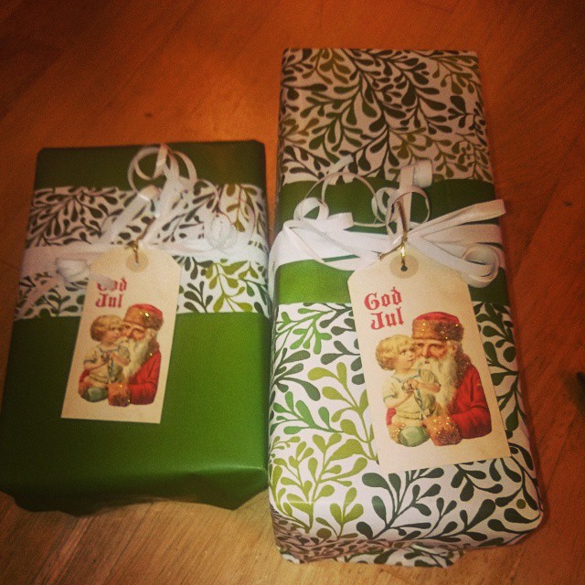 Har lagd pepperkaker i dag også + pakket inn et par gaver, ble de ikke fine med magebånd??