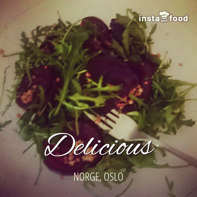 1 rødbete skjæres i tynne skiver, stekes på 180 g midt i ovnen ca 20 min m litt olje og salt