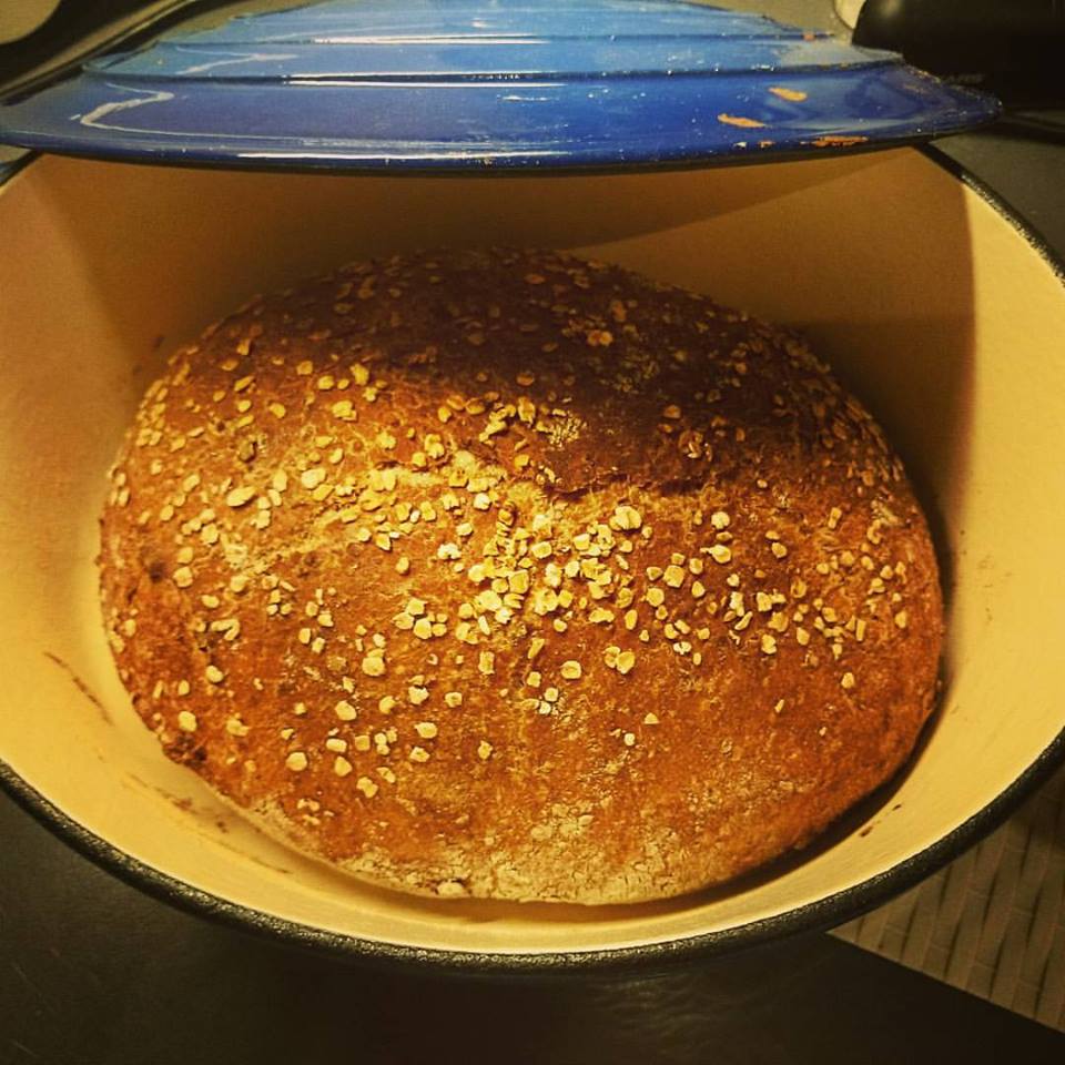 Som jeg har fortalt før har jeg fått helt dilla på eltefritt, og nå har jeg fått tak i en gryte også. Så i dag lagde jeg eltrefritt brød i jerngryte for første gang. Det ble kjempegodt, knasende sprø skorpe og så luftig.