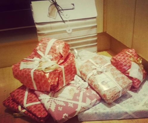 Jeg har fått pakket inn noen julegaver også, jeg synes det er koselig å gjøre det. I år har jeg pakket inn i rødt/hvitt/gull og naturfarget papir. Det er koselig å drikke litt deilig kaffe, høre på julemusikk mens man pakker inn gaver.