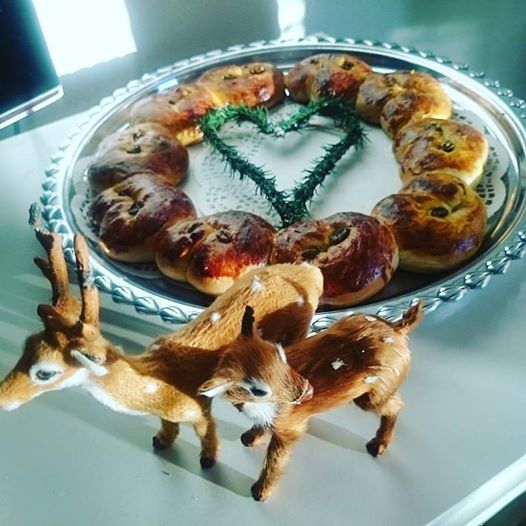 I dag har jeg lagd en Lussekattekrans som jeg ble veldig fornøyd med, artig å være litt kreativ også. Jeg brukte samme oppskrift som sist ->https://marylovesthelittlethings.com/2015/12/09/lussekatter-3-2/ lagde halv porsjon, lagde 45 g boller brukte ti stykker til kransen og lagde S`er av resten.