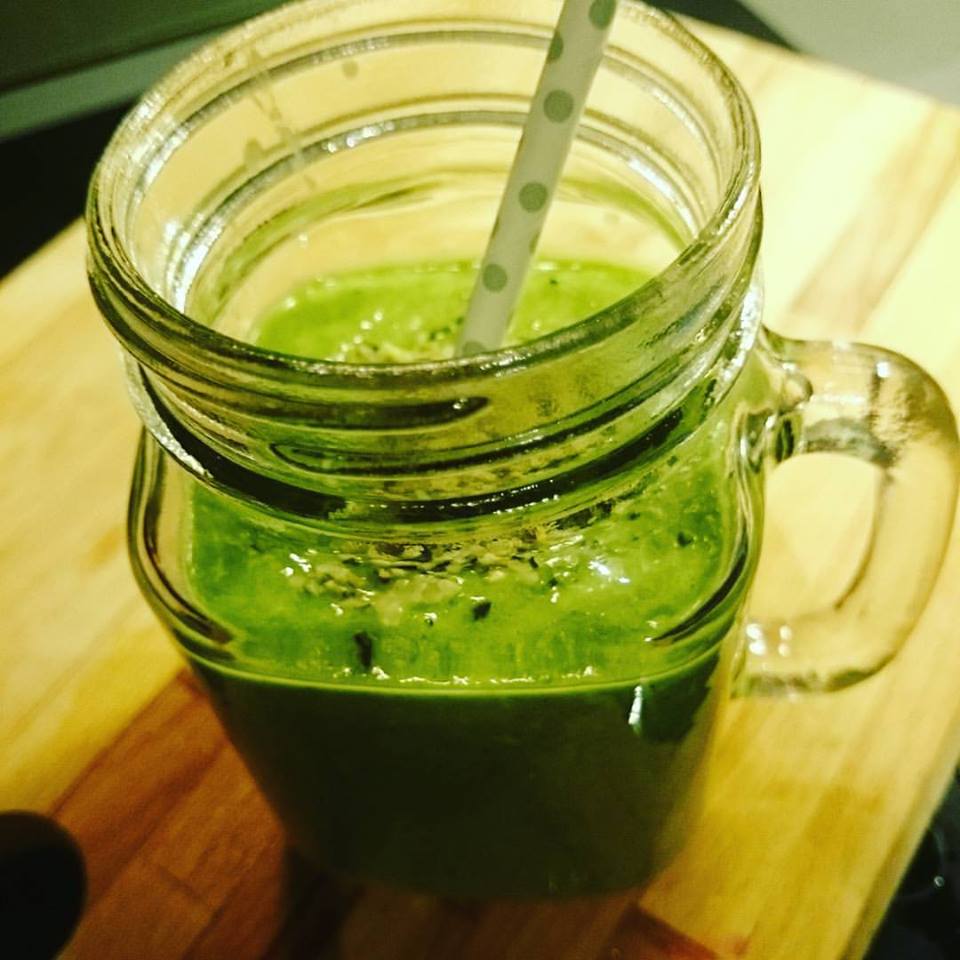 Skjær av skallet på kiwien. Bland avokado, kiwi og spinat i en hurtigmikser. Tilsett eplejuice og press over limesaft. Kjør alt til en jevn og smidig smoothie. Jeg hadde hempfrø på toppen.