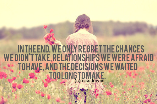 Ikke la deg presse av problemer, bli heller ledet av sine drømmer. Lev det livet du ønsker å leve, bli den personen du ønsker å være. Ta avgjørelser og handle på grunnlag av dem. Det er lov å feile, da prøver du heller igjen. Selv om du faller tusen ganger, slipper du i det minste å lure på hva som kunne ha vært.
