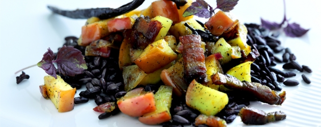 Eplebacon på svart ris, 4 porsjoner