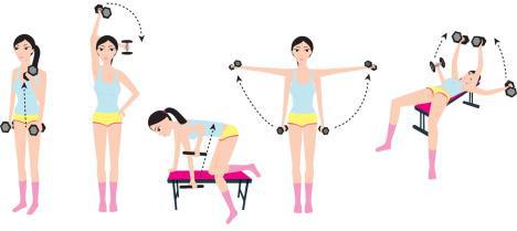 Øvelsene gjøres 3 x 15 g, minst tre ganger i uken, og allerede etter tre uker vil du merke forskjell. Dersom du ikke har håndvekter, kan du fylle tomme flasker med vann eller sand.