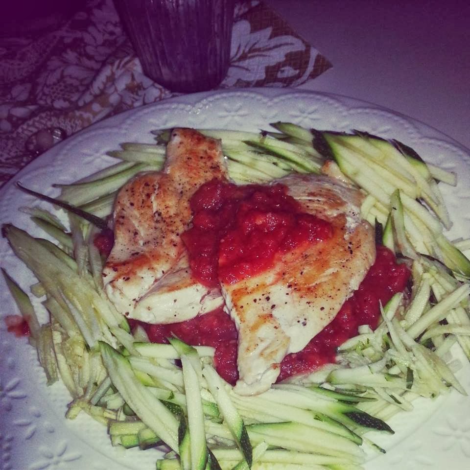 Kylling med tomatsaus og «spagetti» til middag