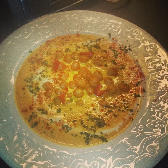 Jeg tok å skylte en pakke kikkerter i vann, stekte disse i panen med chiliolje og chitpotle, hadde de på toppen av suppen + en liten skvett fløte.