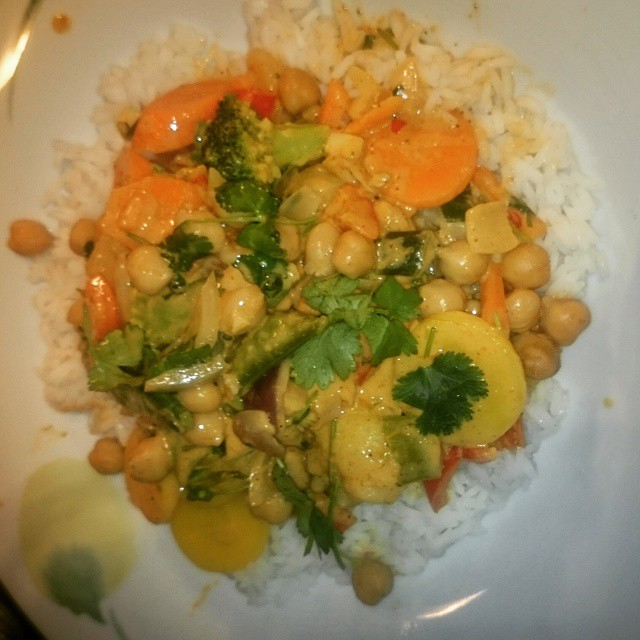 I går lagde jeg lettvint Tikka Masala og gulrotråkost til kvelds, i dag ble det Vegetar curry.